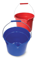 Tough, impact resistant, high density polypropylene 10 quart/9.5 liter utility pail. Strong corrosion resistant metal handle. Holds shape. Available in Blue (-BL), Red (-RED and Silver (-SLV).